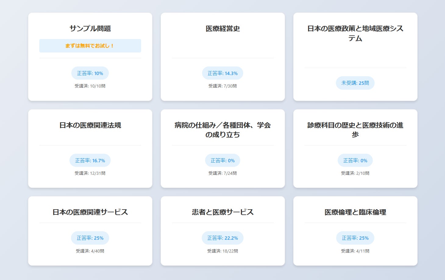 学習者の理解度を正確に把握し、効果的な試験対策を実現する進捗管理システムを実装。特に理解が難しい分野や苦手な項目を自動で分析し、重点的な学習が必要な領域を明確に示します。これにより、限られた学習時間を最大限に活用した効率的な試験対策が可能となります。