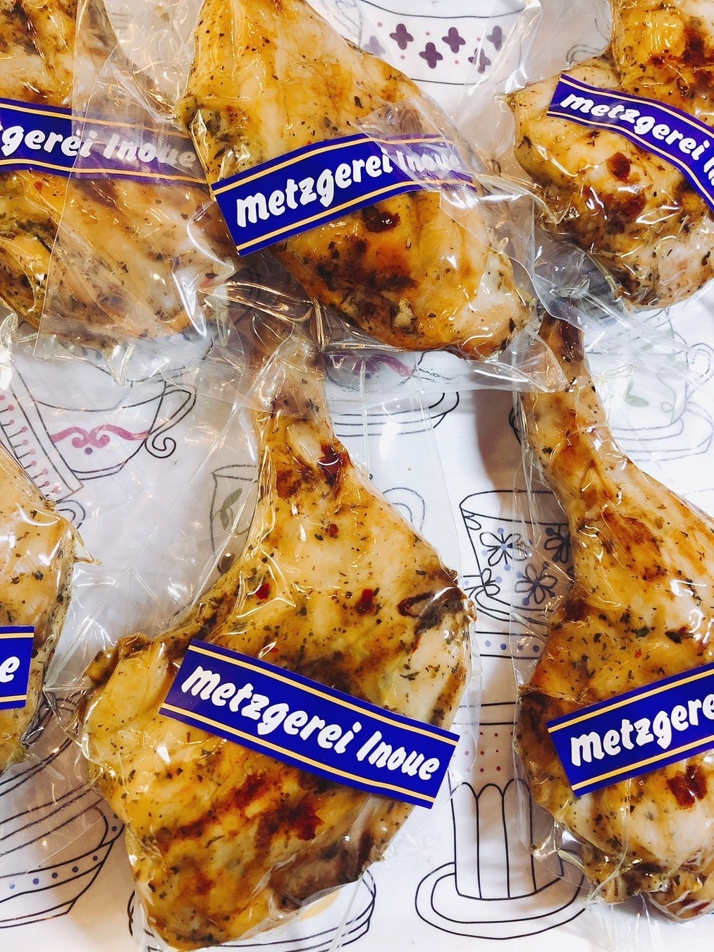 このドイツ風ローストチキンですが、創業店の名古屋ではクリスマスシーズン限定だったのですが、あまりにも美味しく大好評のため定番商品化された出世商品なんです。そのため、縁起の良い商品として受験生の方にもぜひおすすめです。油で揚げず、丁寧に焼き上げられていますので余分な脂も落ちていてヘルシーです。創業店のある名古屋で有名な鶏専門店の鶏を使用し、ドイツ産スパイスを一羽一羽丁寧に擦り込み焼き上げた、安心・安全で美味しい一品です。よくある甘辛醤油味の一般的な味わいとは一線を画したメツゲライ・イノウエだけの特別な香りと味わいで食欲がそそります。
