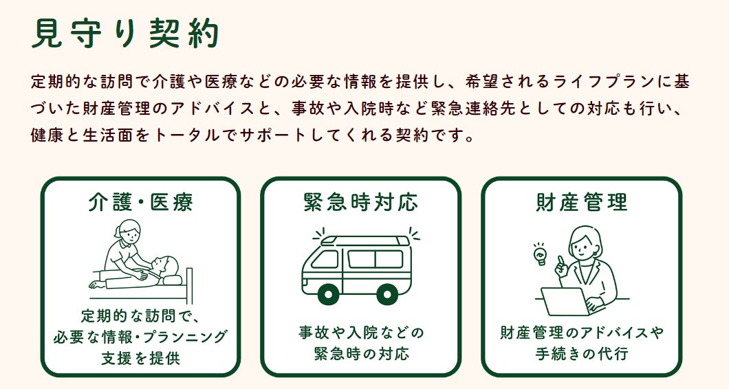 これらのサービスを通じて、京都や大阪などを中心とする京都銀行の顧客が多く住まわれる地域に居住する高齢者が安心して生活ができることの一助となります。そして、尊厳のある人生の終焉が迎えられるように支援をします。
