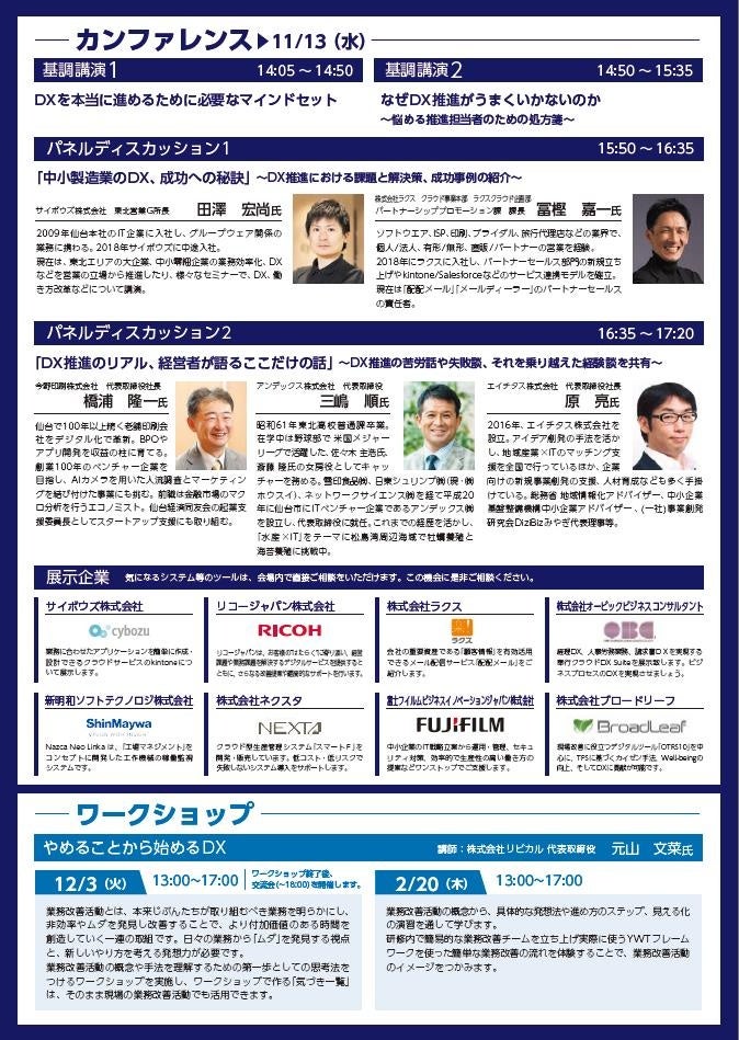 また、12月と来年の2月には『やめることから始めるDX』をテーマに、青葉山仙臺緑彩館で「Mirai DX ワークショップ」も開催いたします。