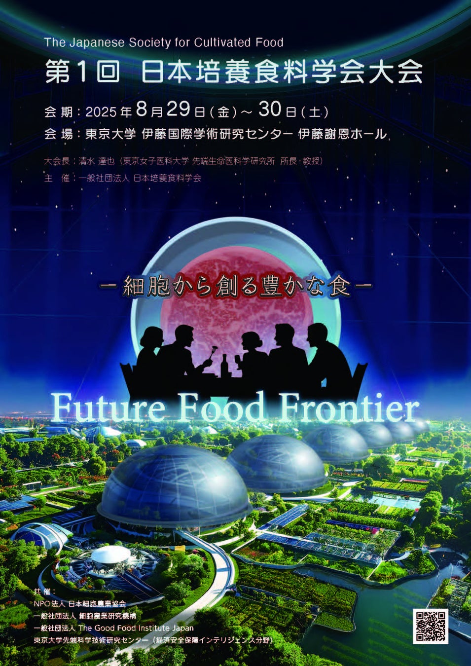 培養食料[1]の研究開発推進を目指す一般社団法人 日本培養食料学会(2025年4月設立)は、記念すべき第一回大会を2025年8月29日(金)・30日(土)に東京大学 伊藤国際学術研究センター 伊藤謝恩ホールにて開催いたします。