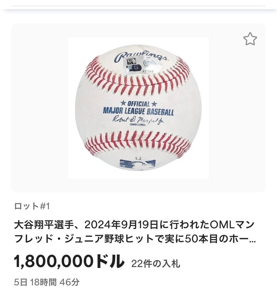 だからこそ、今回の記念ボールは他国のファンではなく、日本人であり大記録を達成した大谷翔平選手の手に戻すことに1番価値があるのではないかと考え、今回入札することを決めました。」とコメントしている。