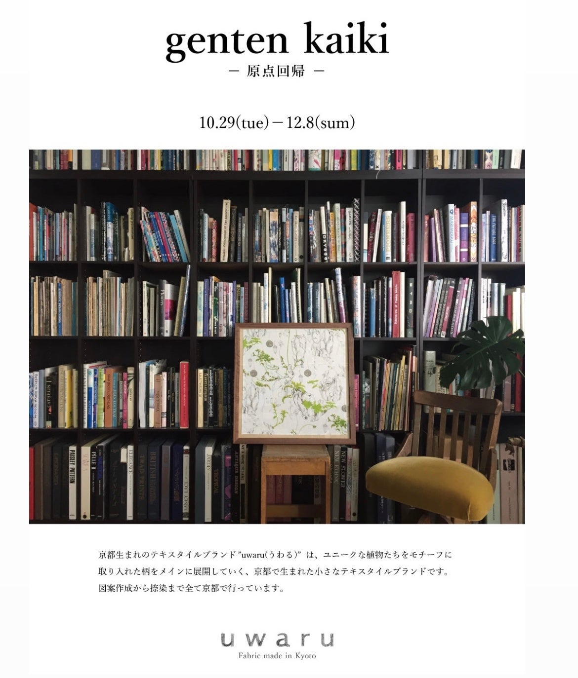 京都で企画・製造のテキスタイルブランド uwaru(植わる)が2024年秋冬のテーマを発表し、2024年10月29日(火)から12月8日(日)まで京都岡崎蔦屋書店にてPop Up イベントを開催します。