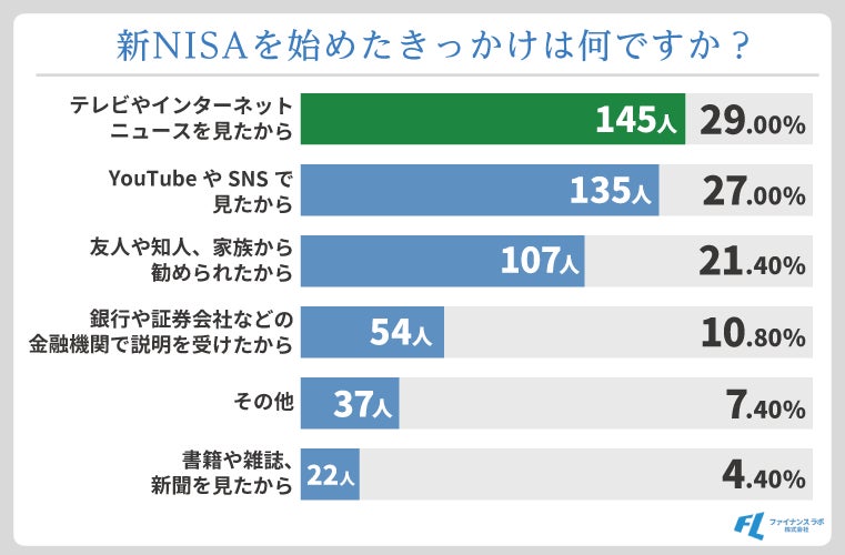新NISAを始めようと思ったきっかけは「テレビやインターネットニュース」「youtubeやSNS」が最も多い!