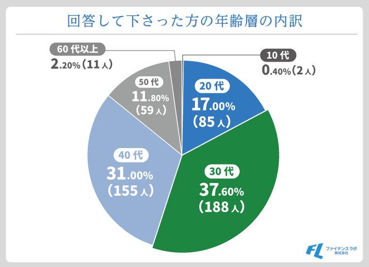 また、今回、回答して下さった500名の方の年齢層の内訳は以下の通りで、30代・40代の方の利用が多いことも伺えます。