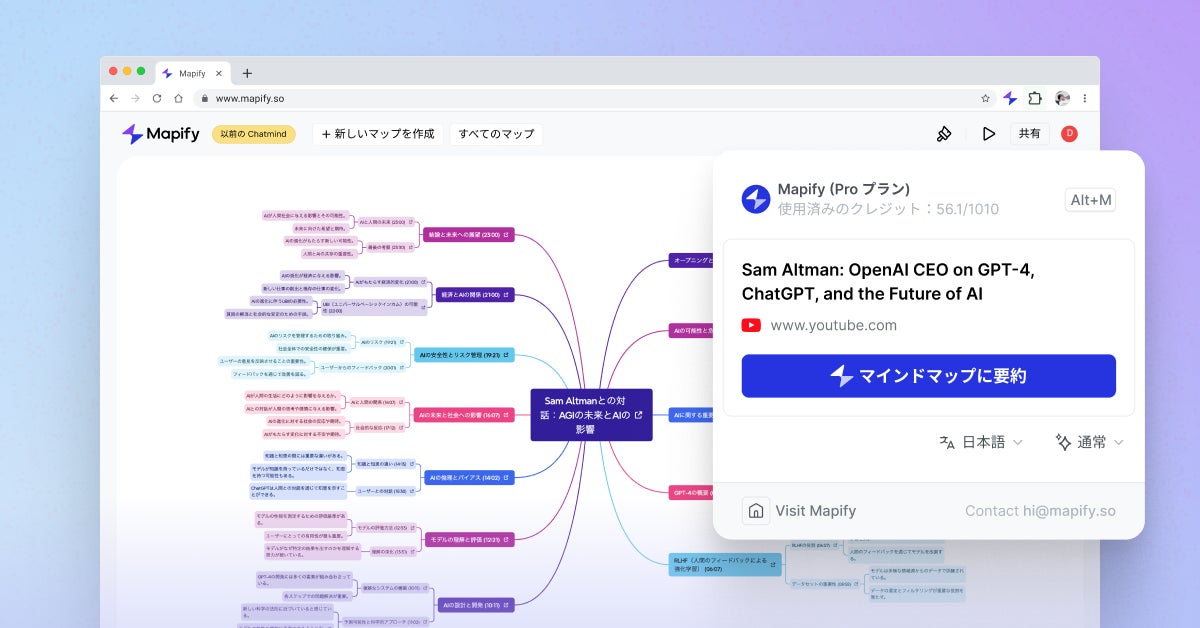 Mapify(Xmindチームが開発)は、現在、日本や世界中で人気を集めているAIマインドマップ要約ツールです。高精度な要約機能と、分かりやすいマインドマップ生成機能は、多くのユーザーから高い評価を受けています。
