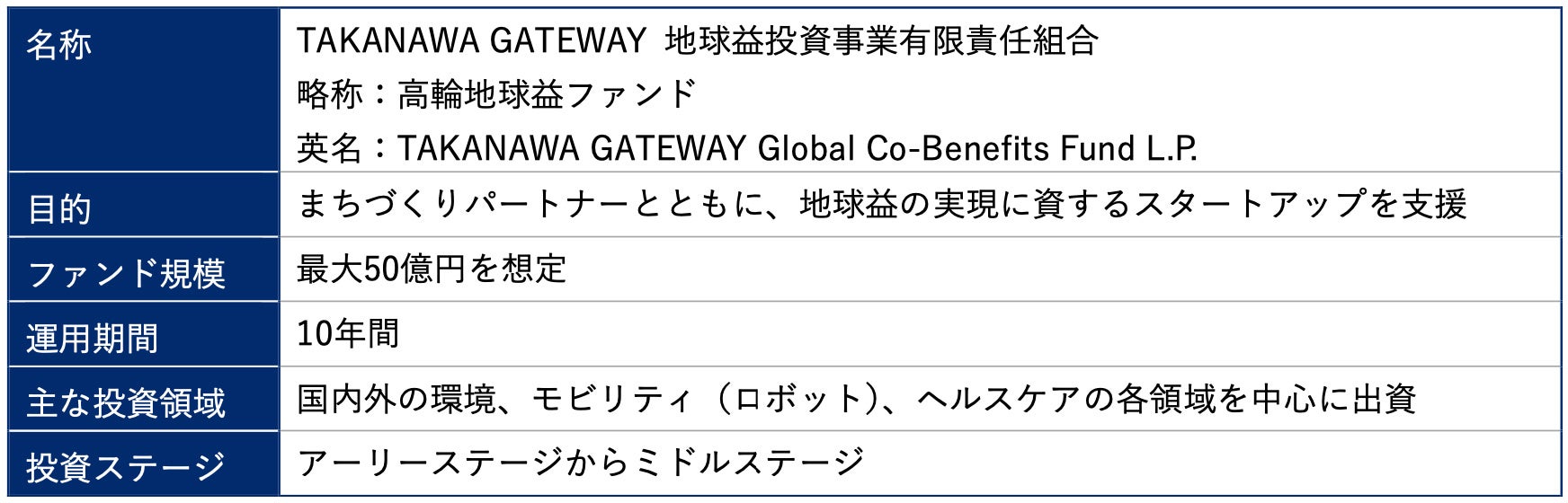 「TAKANAWA GATEWAY 地球益投資事業有限責任組合」(高輪地球益ファンド)