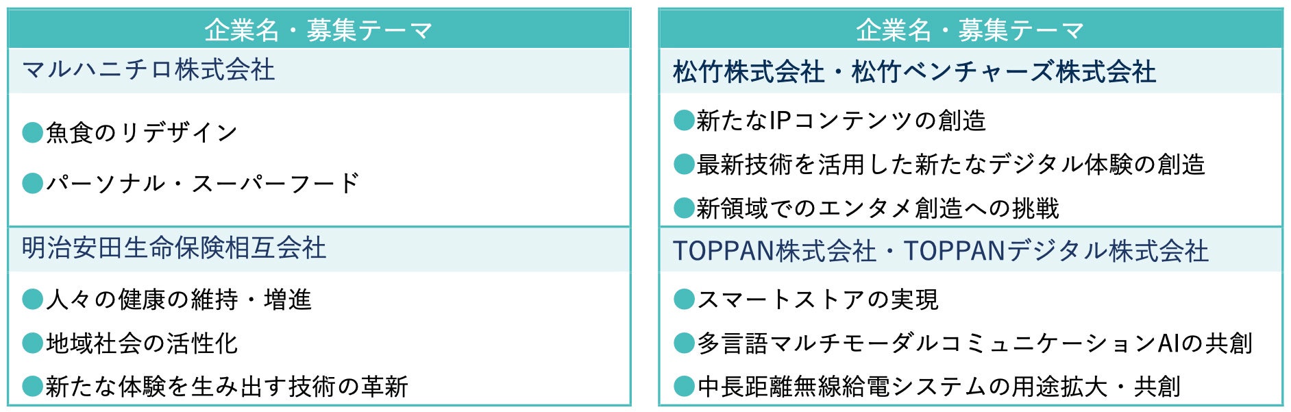 (参考)2024年9月12日リリース時の企業と募集テーマ