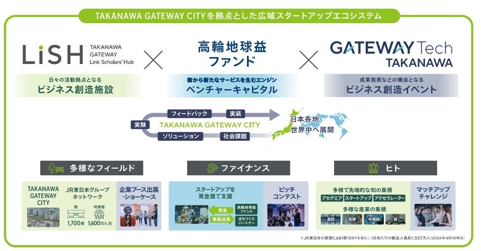 「高輪地球益ファンド」はビジネス創造イベント「GATEWAYTechTAKANAWA」で生まれ たビジネスの種の成長を支援します。支援を通じ、TAKANAWA GATEWAY CITYを拠点とし た広域スタートアップエコシステム※1の一層の発展に取り組みます。