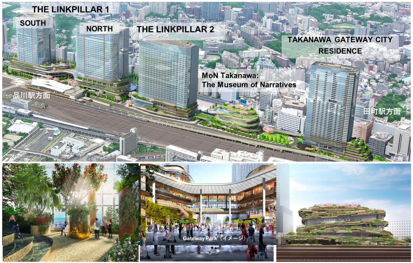 THE LINKPILLAR 1および高輪ゲートウェイ駅周辺エリアを2024年度末(2025年3月下旬)に開業し、その他の棟(THE LINKPILLAR 2・「MoN Takanawa: The Museum of Narratives」・TAKANAWA GATEWAY CITY RESIDENCE)および各棟周辺エリアを2025年度中に開業します。
