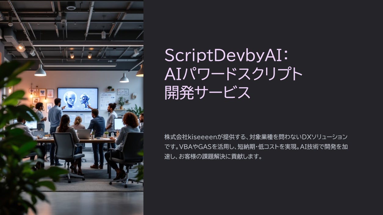 株式会社kiseeeen、DX推進に未着手の企業向けに、その一歩目に最適なサービス「ScriptDevbyAI」をリリース