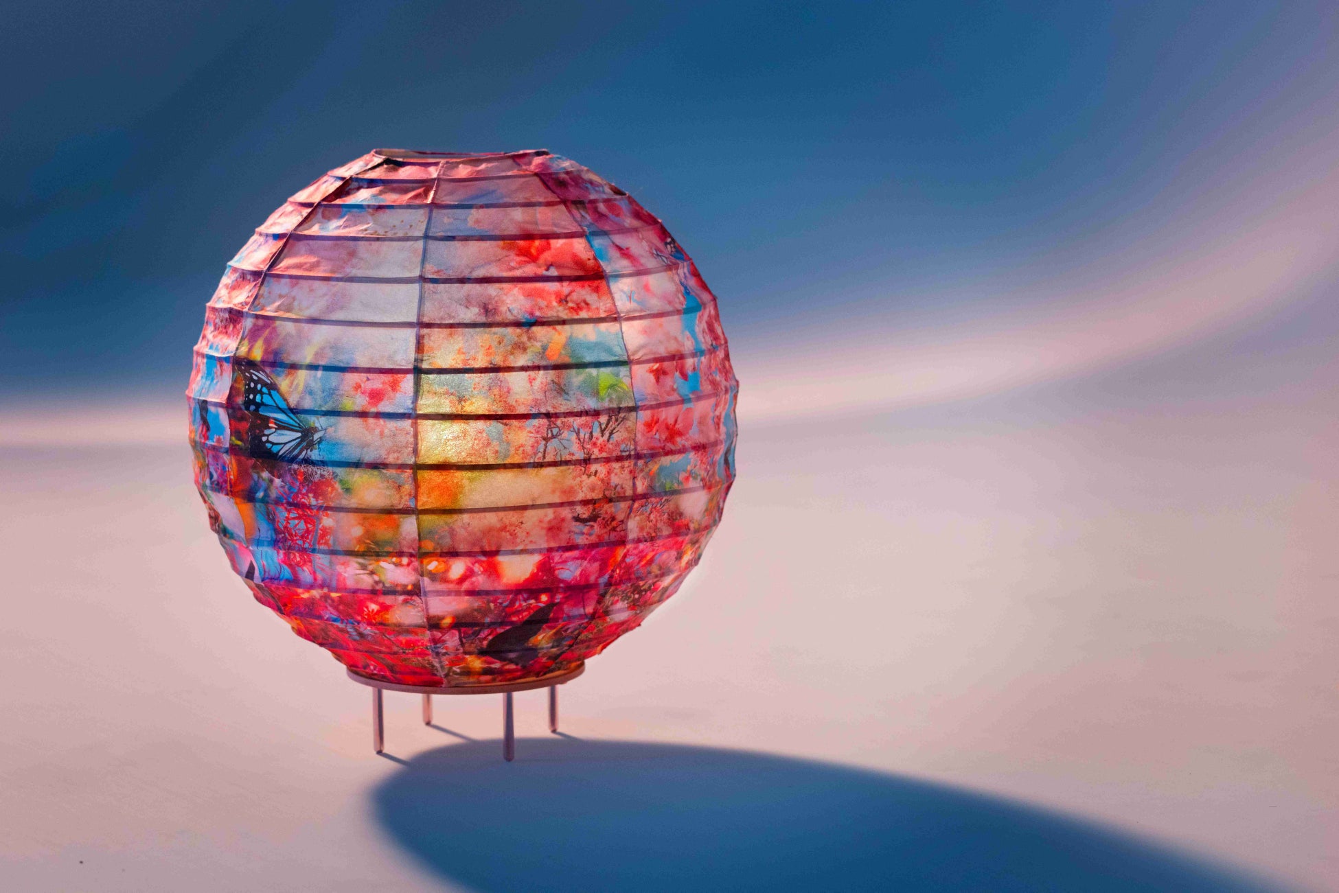 蜷川実花の作品を和紙に印刷し、丁寧に張り合わせて仕上げた提灯です。生活空間を温かく照らすスタンドライトとして届いてすぐに使用できるLEDライトもセットに。