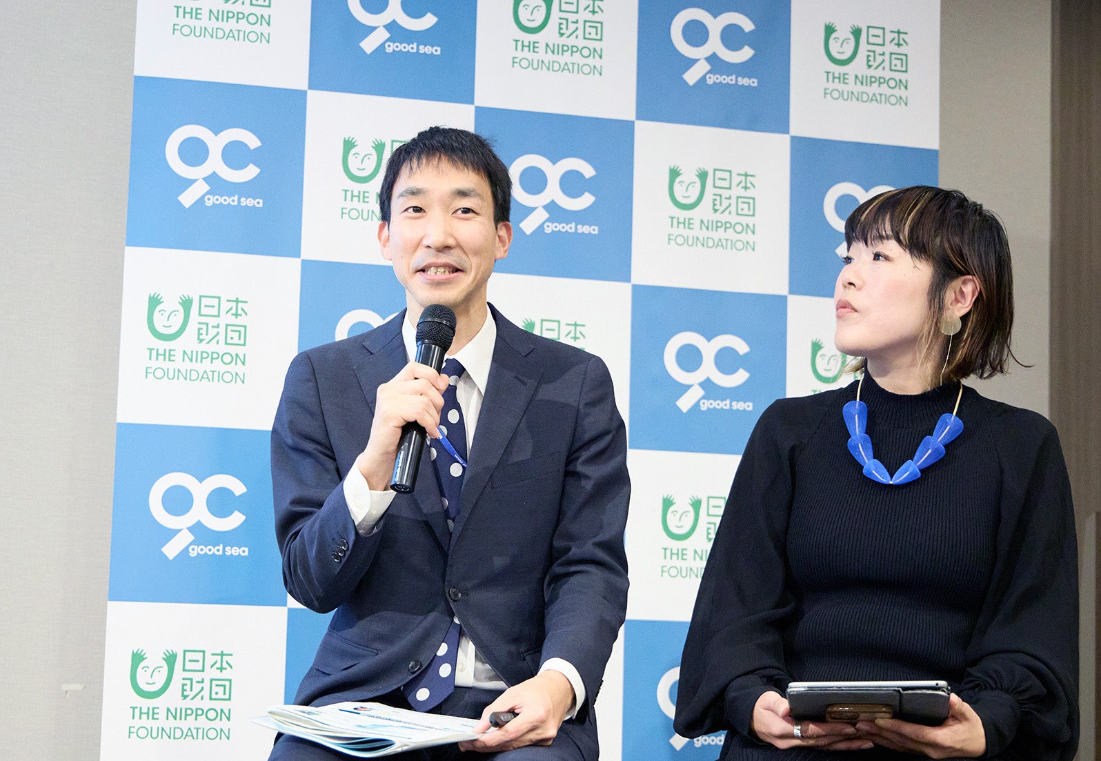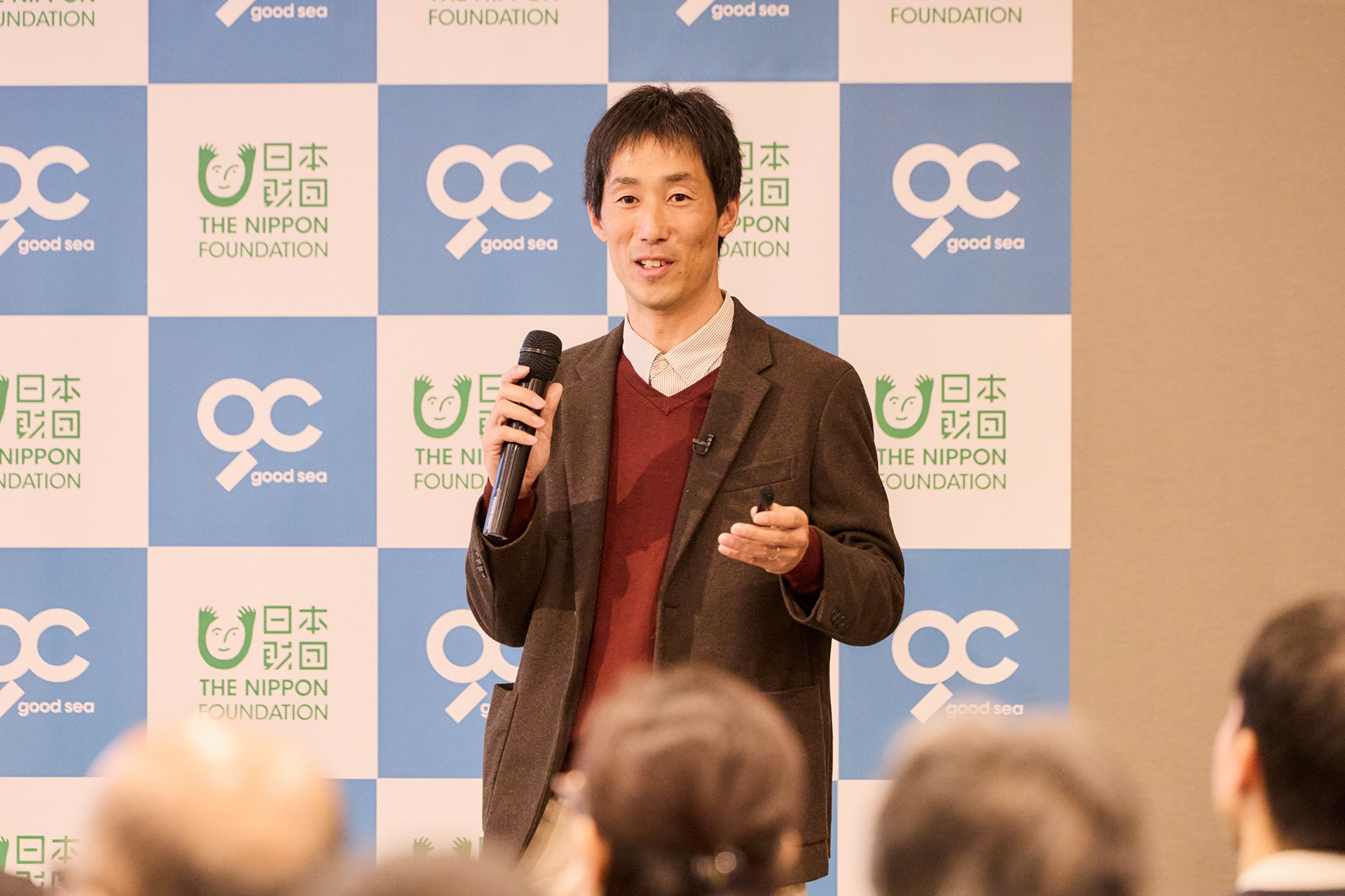 第一部では、グッドシー理事 蜂谷潤が登壇し、公益財団法人日本財団の支援を受けて2023年から2024年にかけて実施した、国内3か所での海藻栽培調査について報告しました。