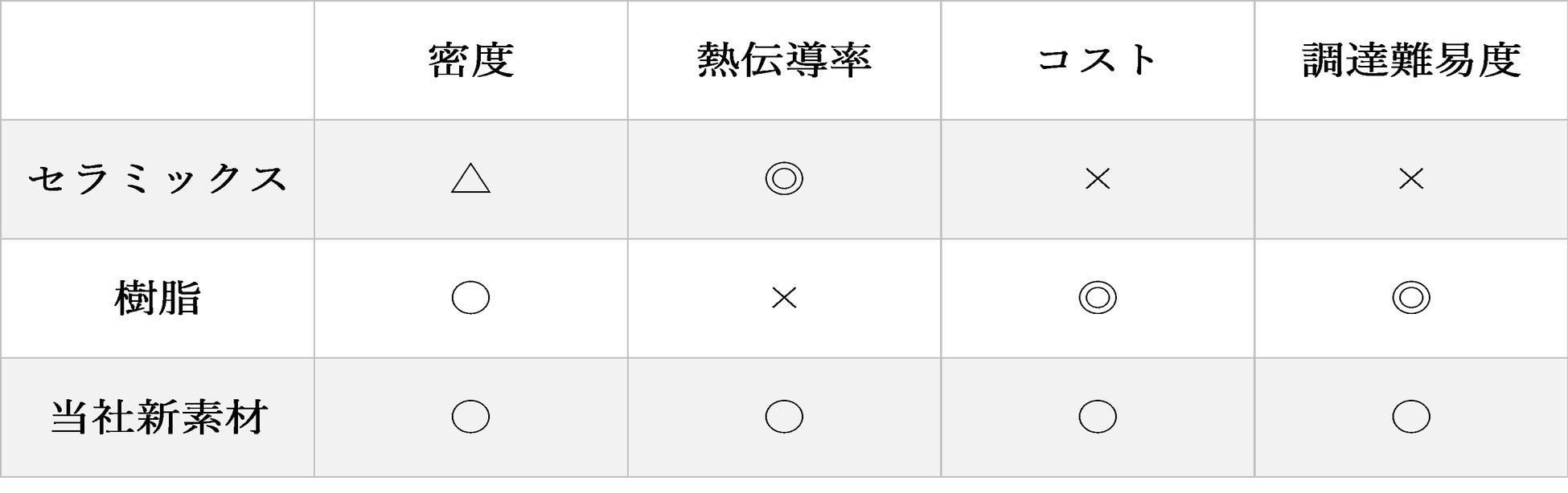 この度、当社が開発した複合材は、セラミック素材と樹脂素材の優れた特性を生かし、高熱伝導性と高い絶縁性能・強度を実現しました。セラミック素材よりも製造が容易なため、調達期間の短縮や調達コストの低減が期待できます。