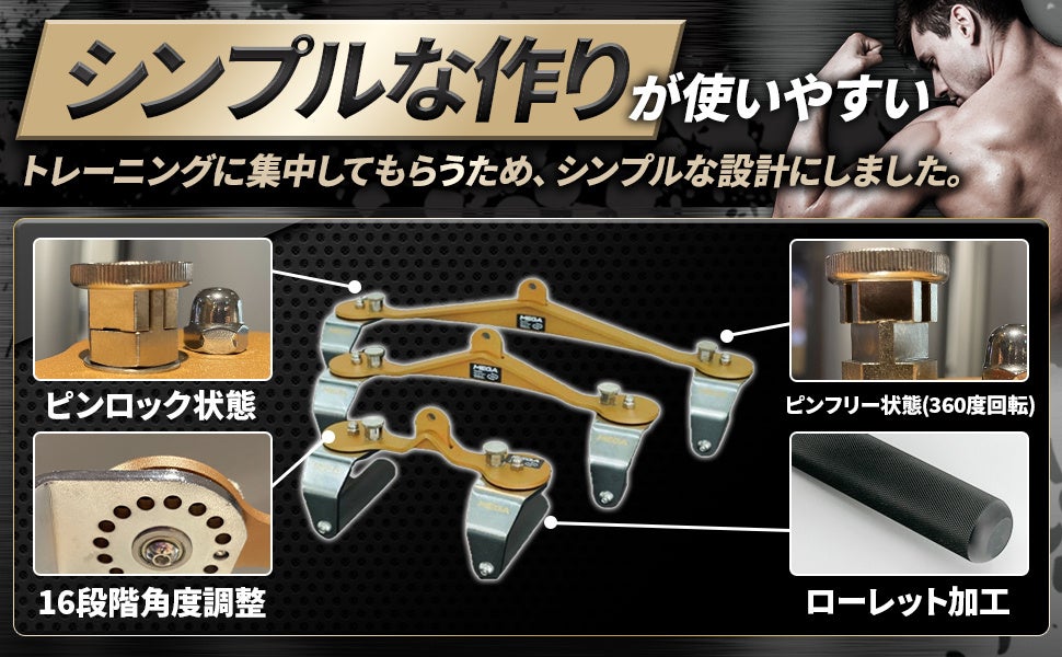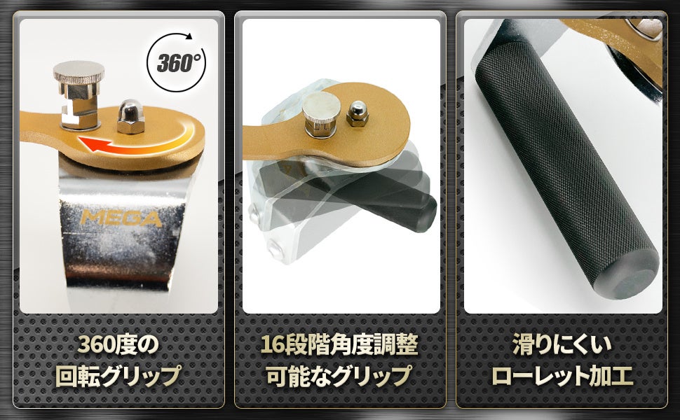 16段階グリップ角度調整・グリップ360°回転・滑りにくいローレット加工