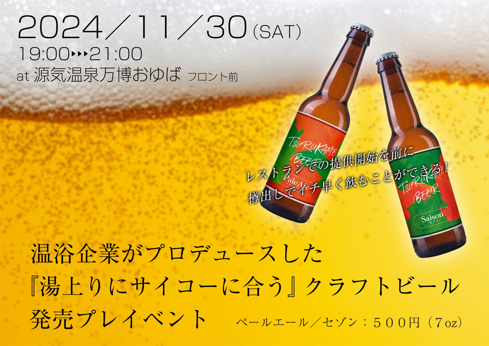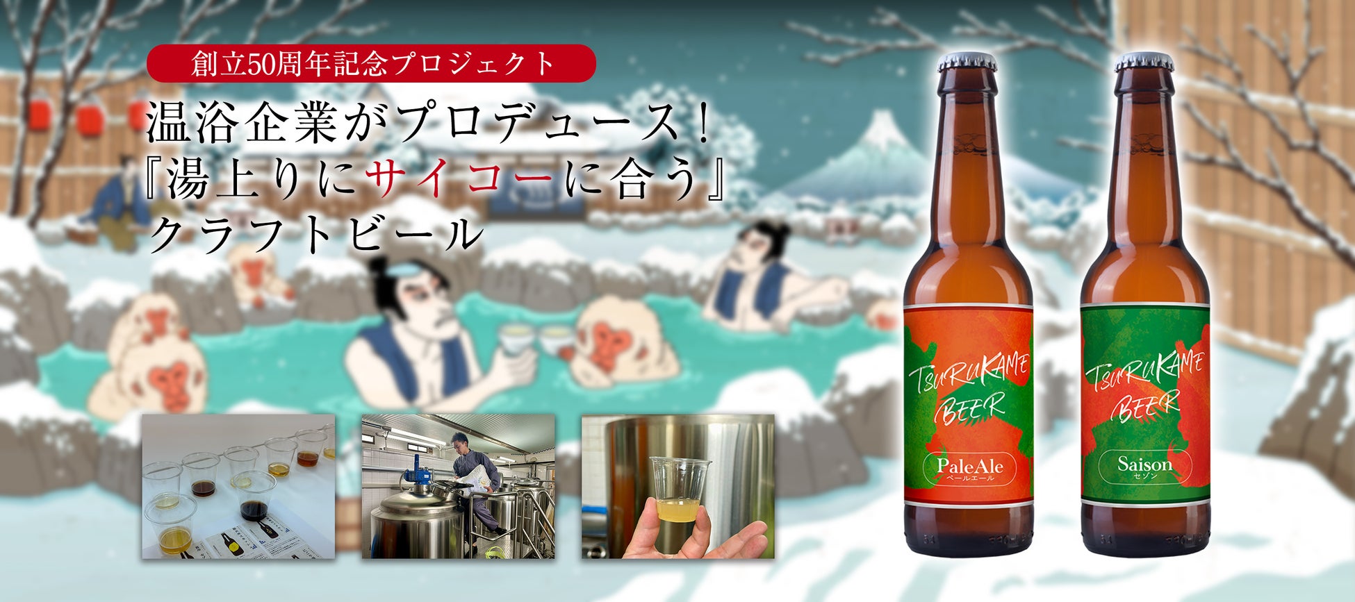 温浴施設を運営するツルカメO&E株式会社が創立50周年を記念して『湯上りにサイコーに合う』クラフトビールをプロデュース!2024年12月1日(日)より運営する一部温浴施設のレストランにて提供開始!
