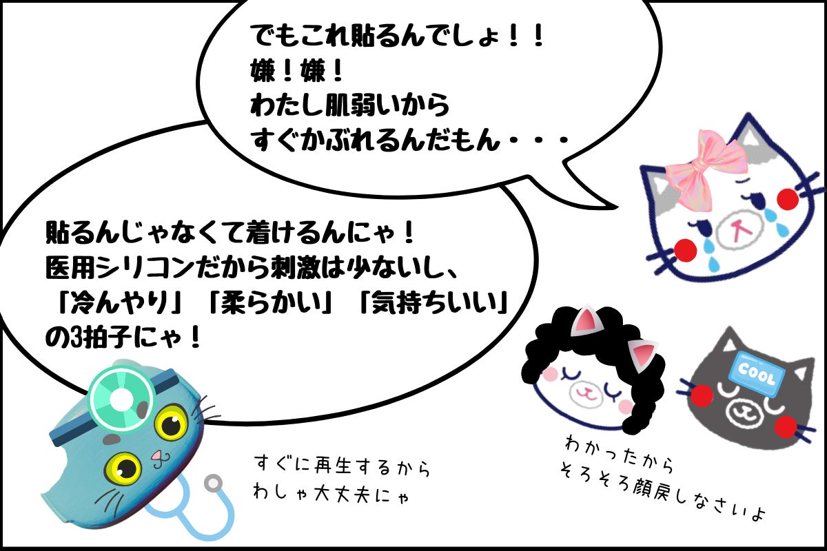 冷たさ持続!やわらかフィット感!繰り返し使える!発熱時などのつらい時に、免疫システムのはたらきを妨げずに、局所冷却でカラダをラクにします。熱病対策で国家的な導入実績などがある、頼れるカワイイヤツです!