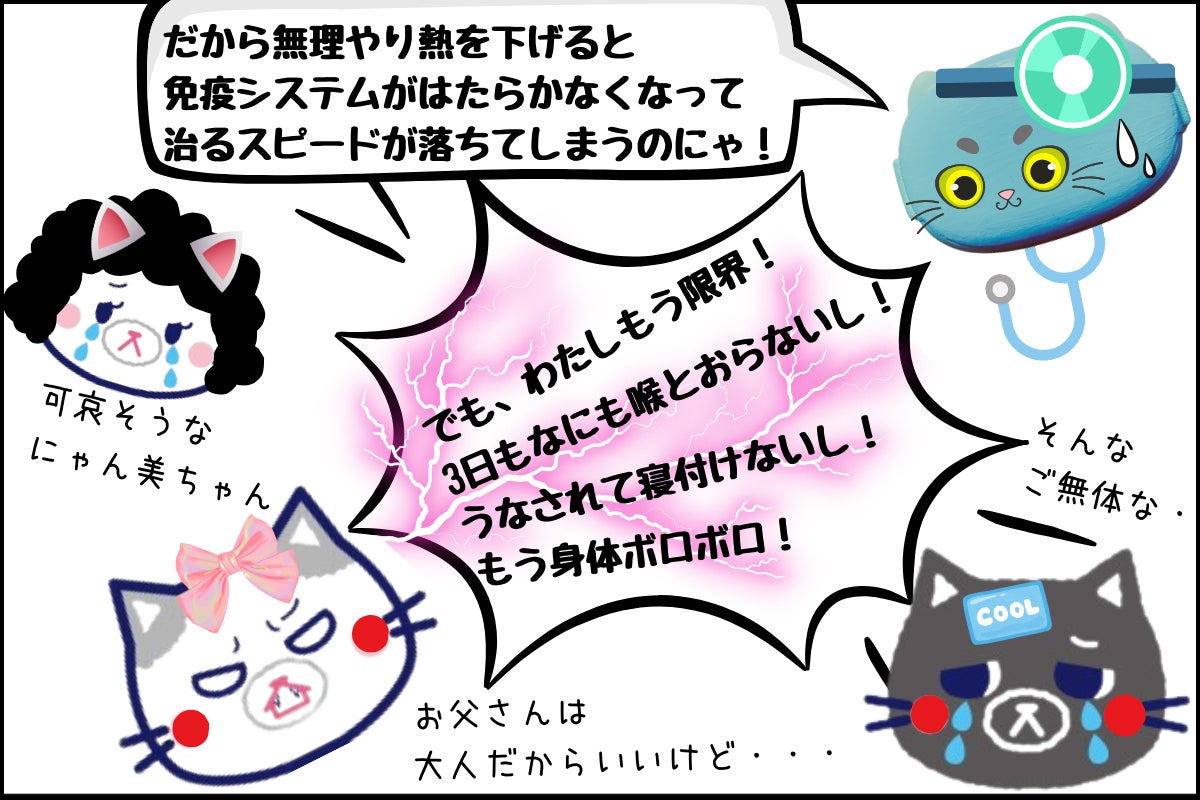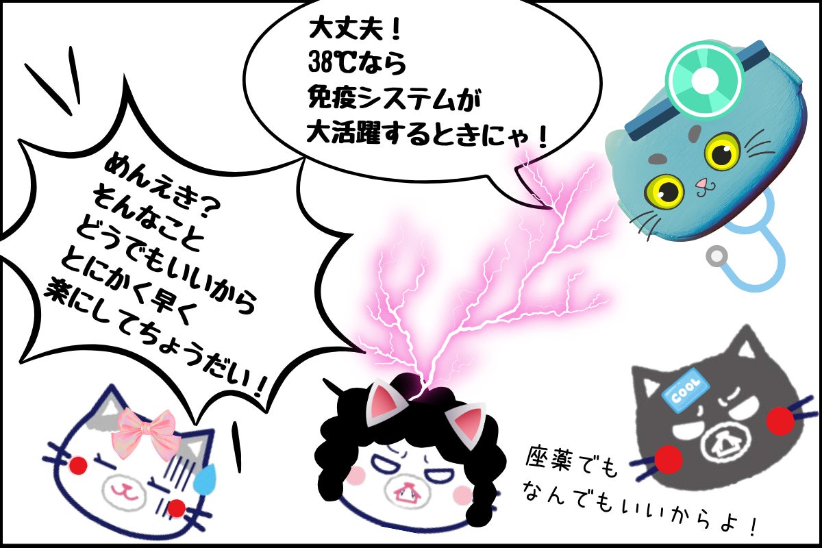 局所冷却が発熱時に有効な理由を猫のTREASURE先生が漫画で解説します