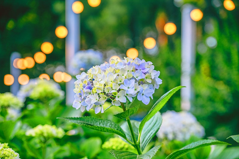 園内には感性を刺激するフォトスポットのほか、オリジナル「あじさい酒」やフリーマーケット、願い事を叶える「あじさい提灯」、園路を照らすストリングライトなど、昼夜を問わず楽しめるコンテンツが満載です。