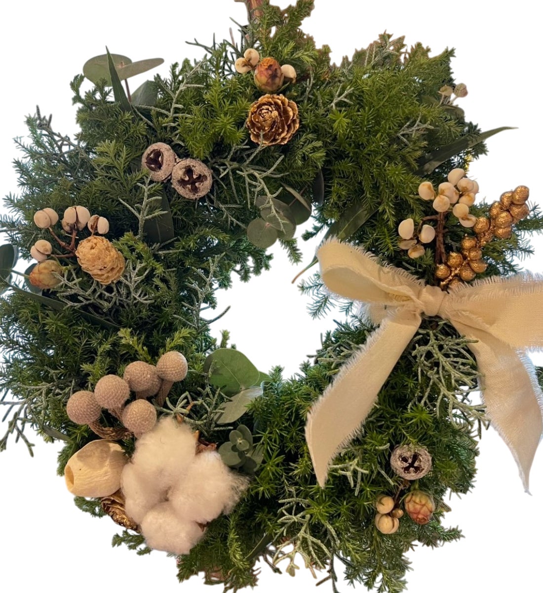 リースづくりでは、植物たちの癒しの香りでまるで森の中にいるような気分に。