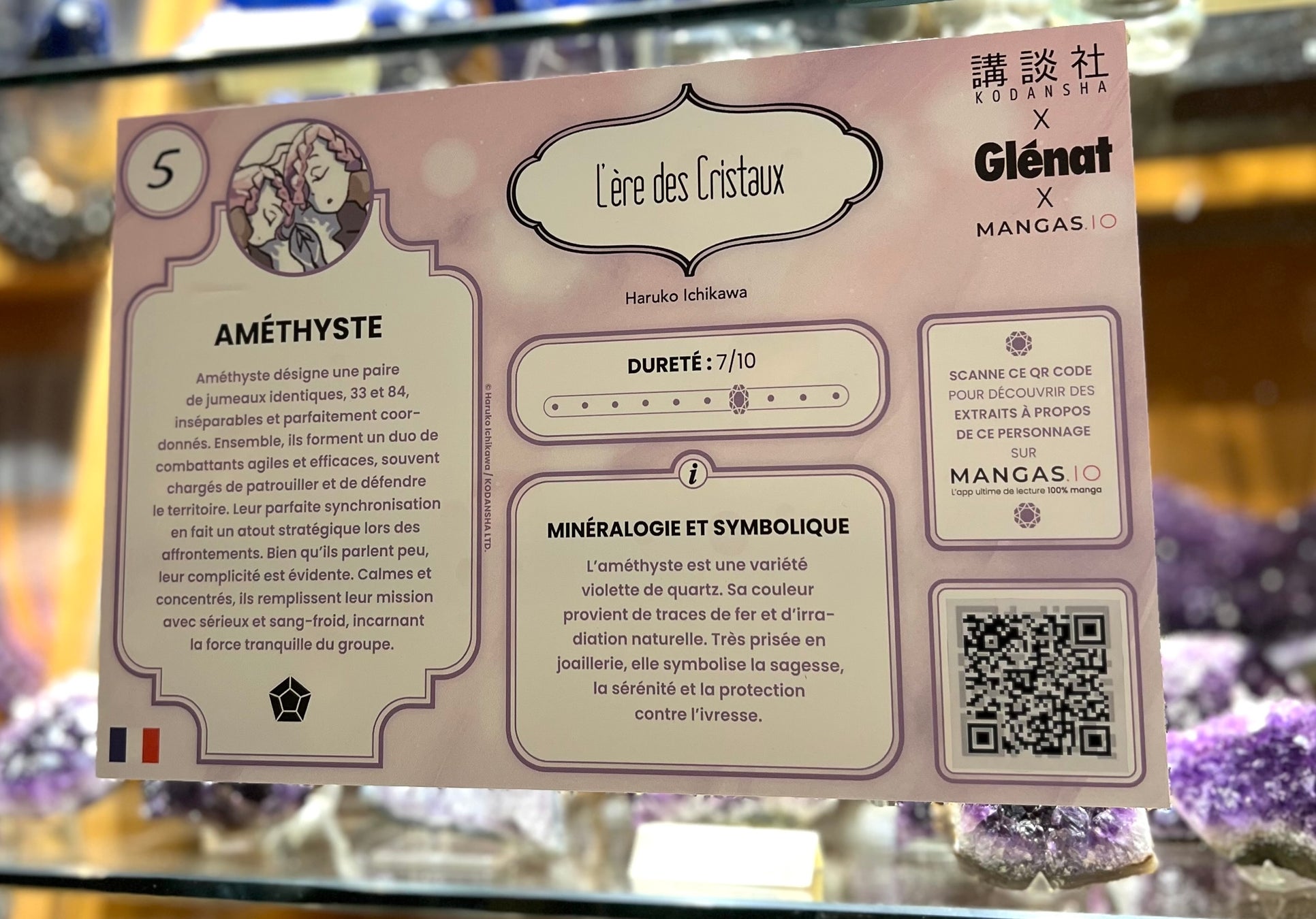 人気コミック『宝石の国』(市川春子 著/講談社)のフランス語版最終第13巻の刊行を記念し、Mangas.ioとフランスの大手出版社で同作品のフランス語版を出版するGlénatは、パリのランドマークであるCarrousel du Louvre(カルーセル・ド・ルーヴル)内の「Les Minéraux(レ・ミネロー)」という鉱物専門店にて、期間限定のポップアップストアをオープンしています。