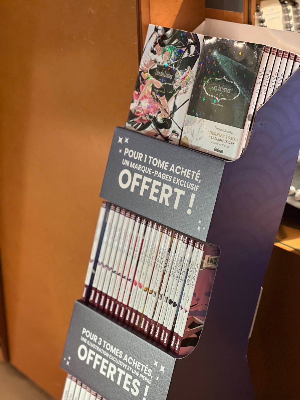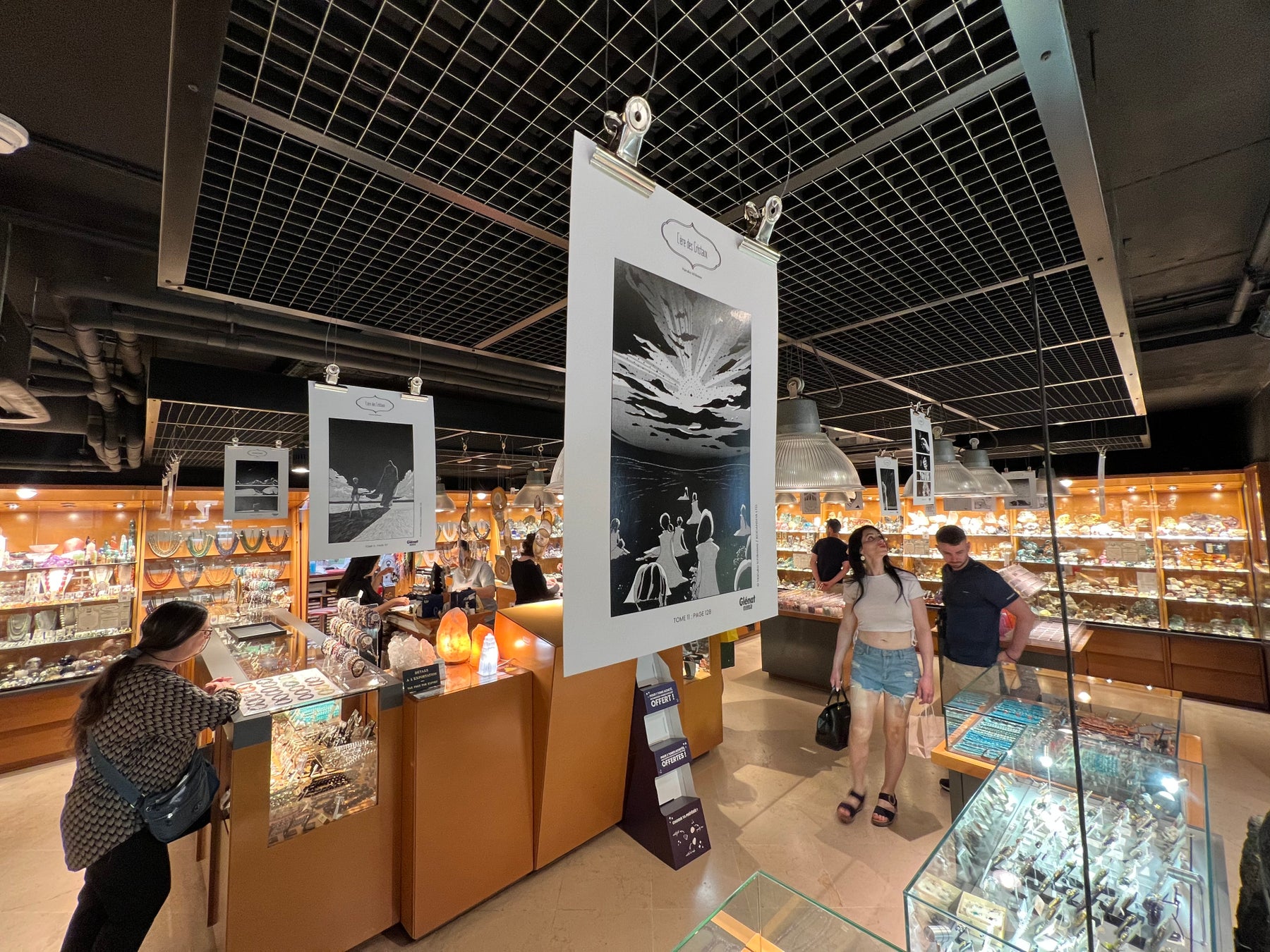 会場ではフランス語版の単行本も販売されており、購入者には限定デザインのしおりや蔵書票(Ex-Libris)に加え、特製鉱石のプレゼントも用意されています。