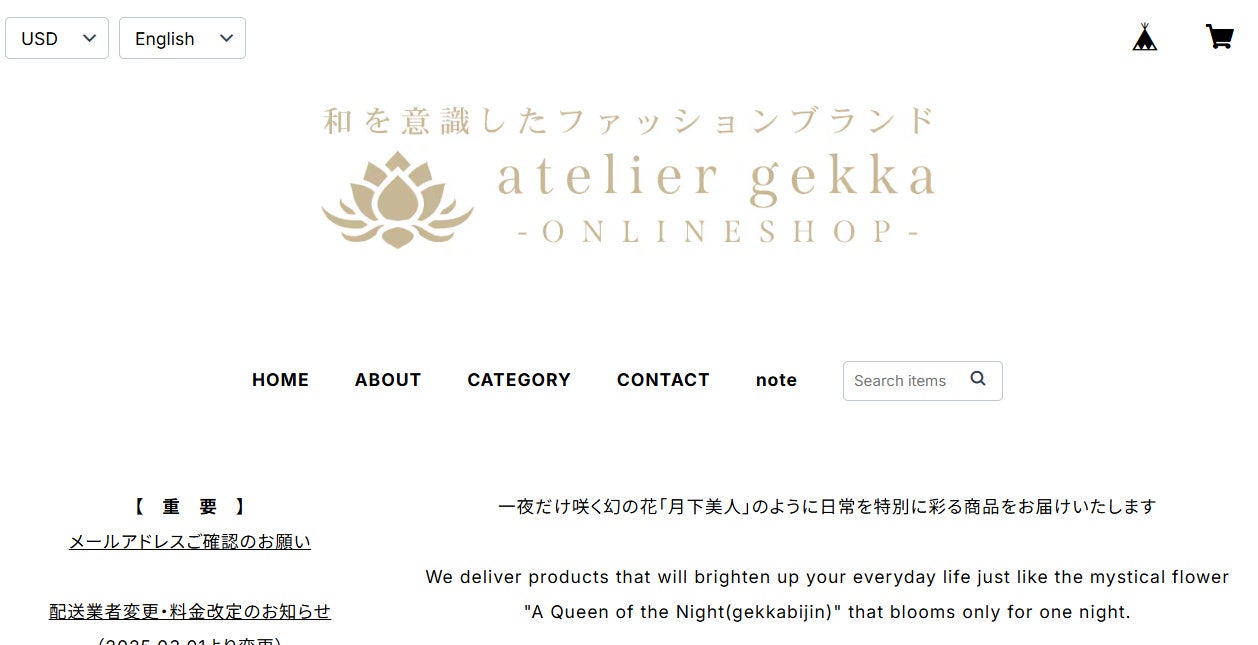 日本の伝統を現代デザインに昇華させる和モダン衣料・雑貨ブランド「atelier gekka」が世界100カ国以上を対象としたグローバル販売を開始