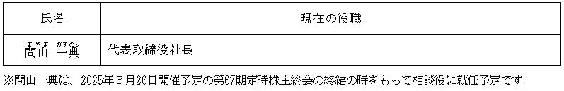 (2)取締役の退任(2025年3月26日開催予定の第67期定時株主総会終結時)