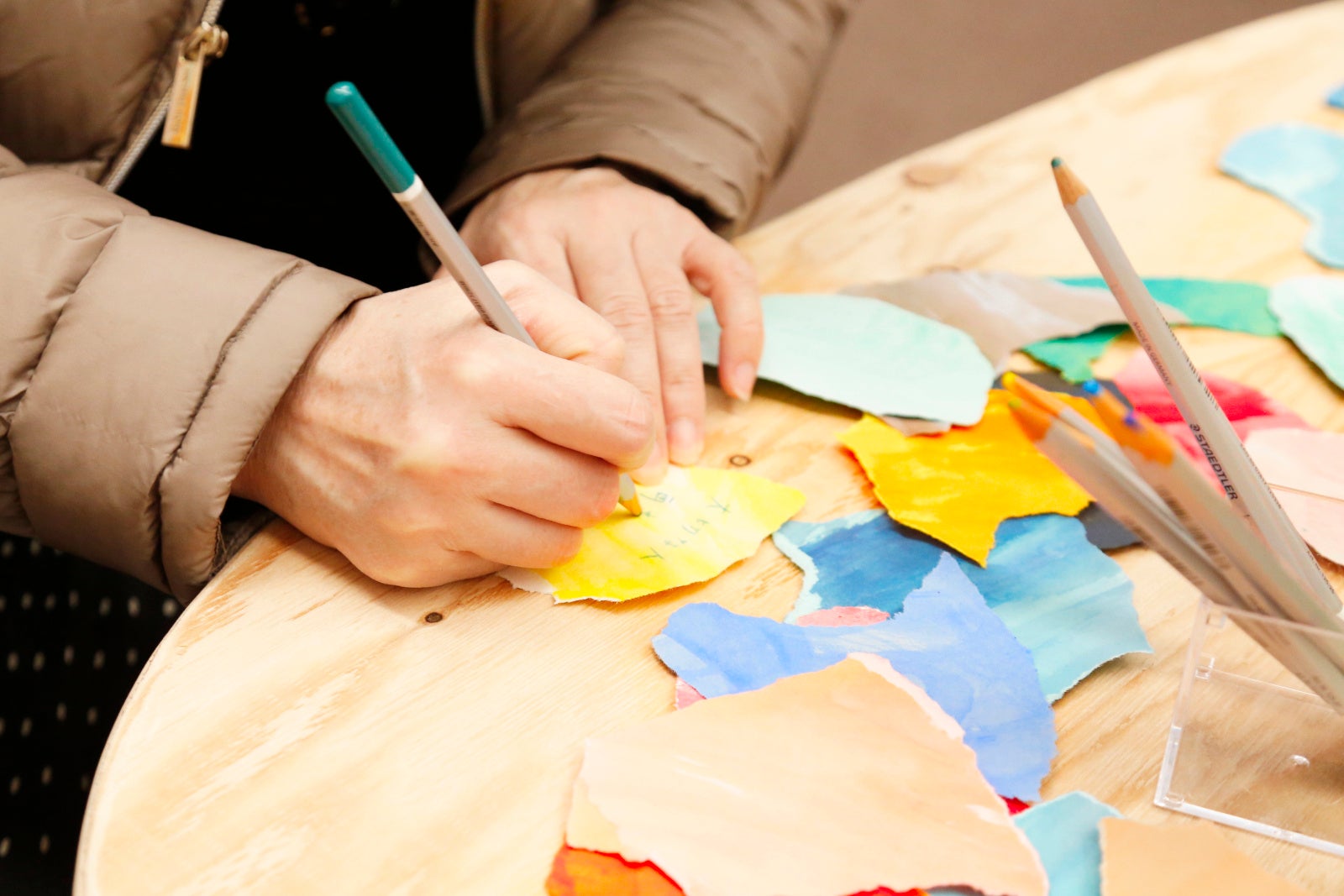 参加者同士で話をするというだけではなく、「カラぺ(カラリエーションペーパー)*」を使ったワークショップも組み込み、今の自分の「見える化」を行なっていきます。