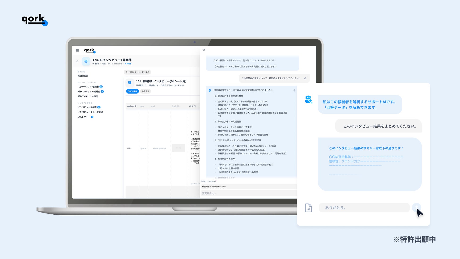 株式会社Quest Research(本社:東京都港区、代表取締役:南健太)は、生成AIを活用したインタビューサービス「qork(コルク)」を正式リリースし、AIインタビュアーが人間の代わりに対話を行うAIインタビュー機能やAI分析機能など、複数の新たな機能を追加しました(特許出願中)。