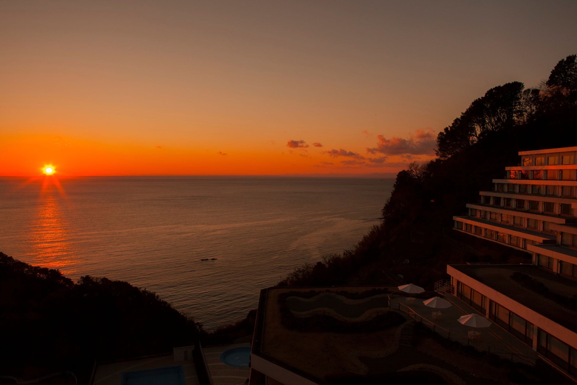 横の長さ39メートル、高さ3メートルの大きなガラス越しに見える景勝地・西伊豆の景観を存分にお楽しみください