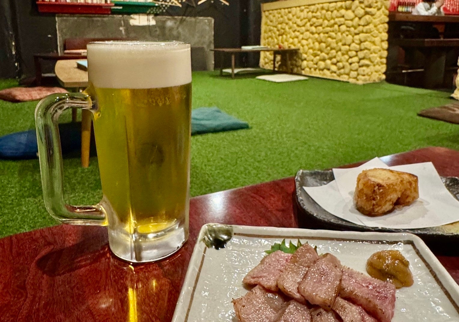 料理も全て店内手作りで、美味しい料理をリーズナブルにご用意しています。中でもA4ランク以上の黒毛和牛のたたきは、卸売業者との繋がりから実現した通常この値段では提供できない逸品です。他にも、隠れ人気メニューである大根の天ぷらや秘伝のタレを使った角煮など、居酒屋の定番からオリジナルメニューまで、幅広く取り揃えております。
