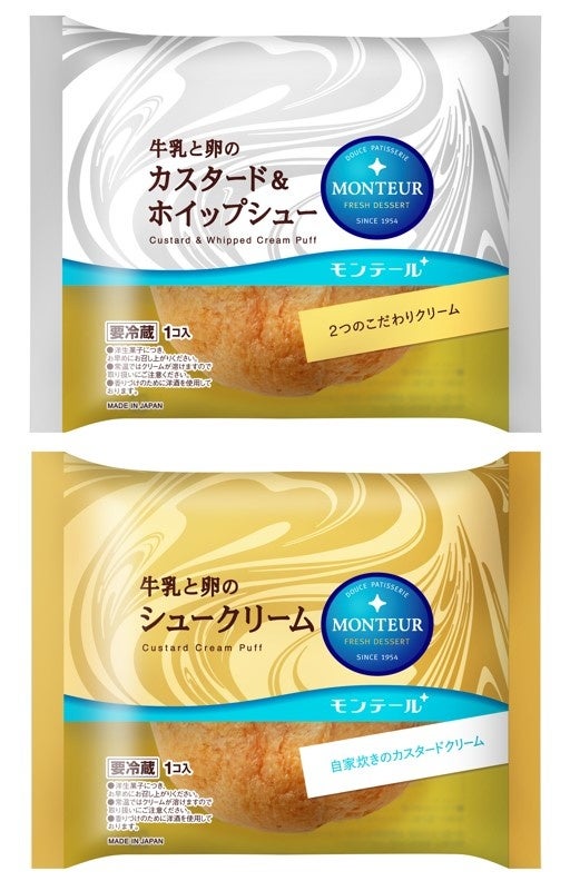 モンテールは1954年に創業し、70周年を迎えたシュークリームをはじめとするチルドスイーツのメーカーです。『しあわせにまじめ』をコーポレートメッセージに掲げ、「小さな洋菓子店」ブランドのシュークリームやエクレア、ロールケーキなど、多彩なスイーツをスーパーマーケットやコンビニエンスストアで販売しています。なかでも、シュークリームとエクレアは人気の定番商品で、「牛乳と卵のカスタード&ホイップシュー」はチルドシュークリーム・エクレアカテゴリーでロングセラー売上No.1※1に選出、「牛乳と卵のエクレア」はチルドエクレアカテゴリーで1999年から25年連続売上No.1※2をモンテールのスイーツが獲得しました。