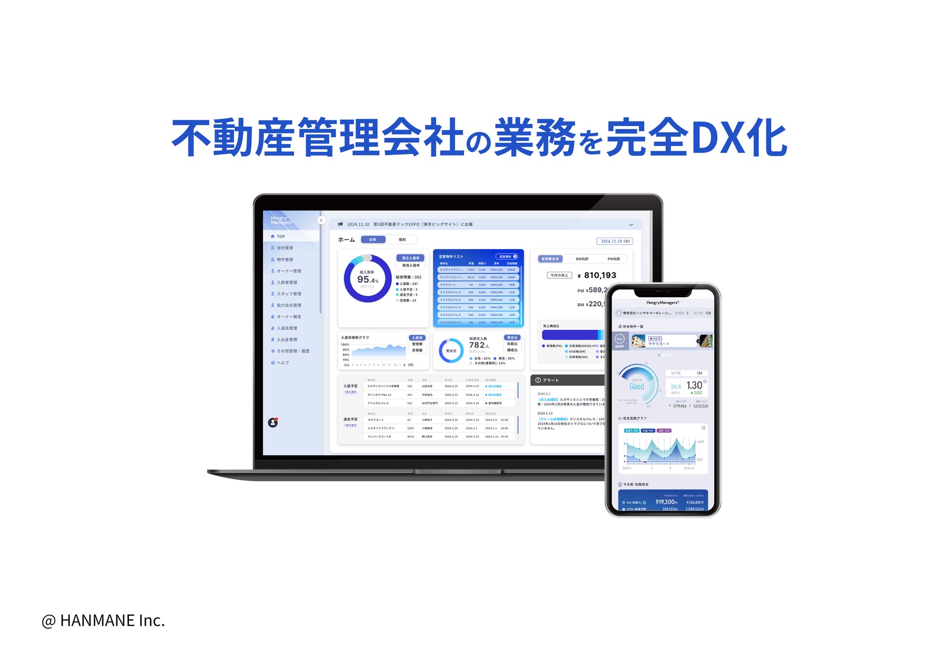 株式会社HANMANE(本社: 札幌市中央区南2 条西24 丁目2-10CHACHACO ビル、代表取締役社長: 朝倉渉)は、不動産管理会社の業務を完全DX 化するために、「ハングリーマネージャーズ」を開発しました。