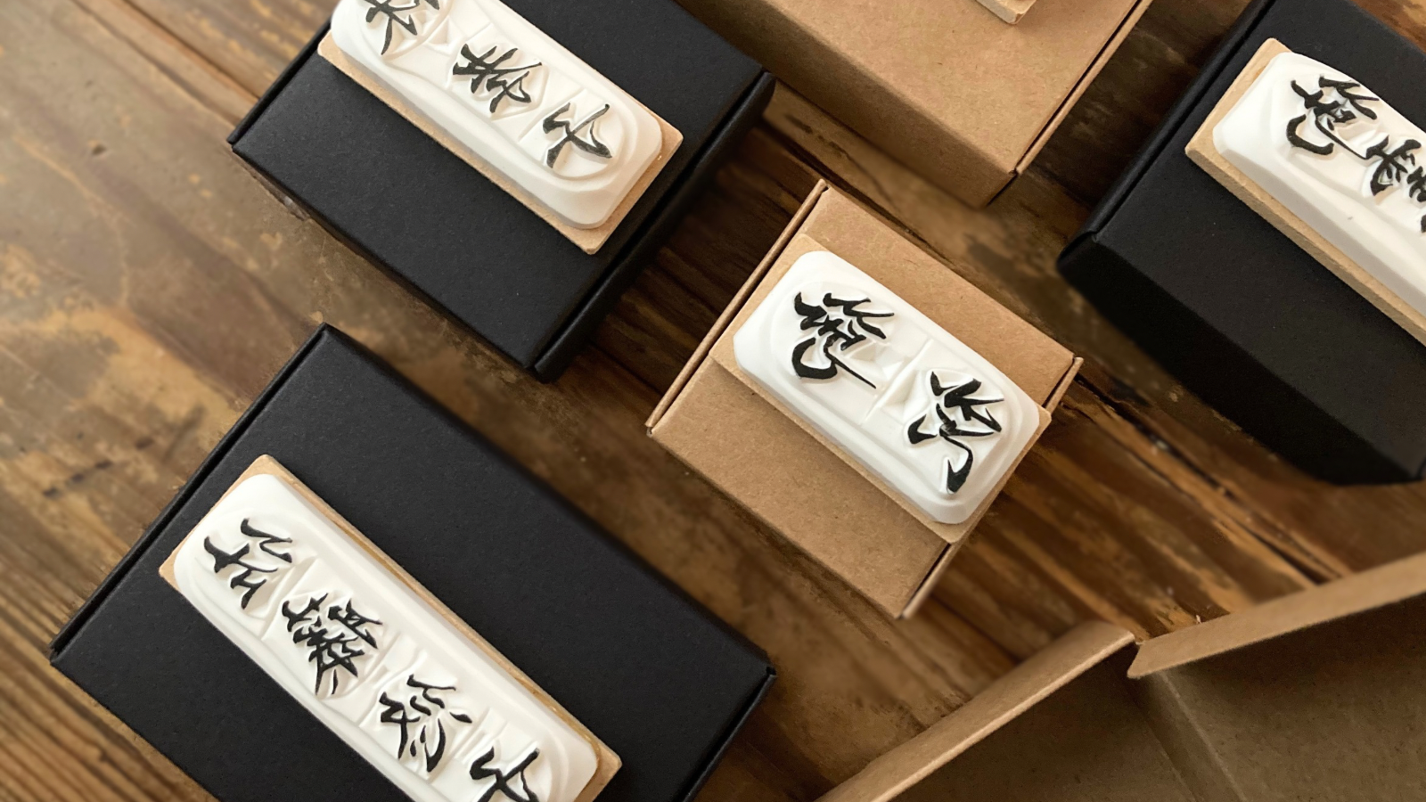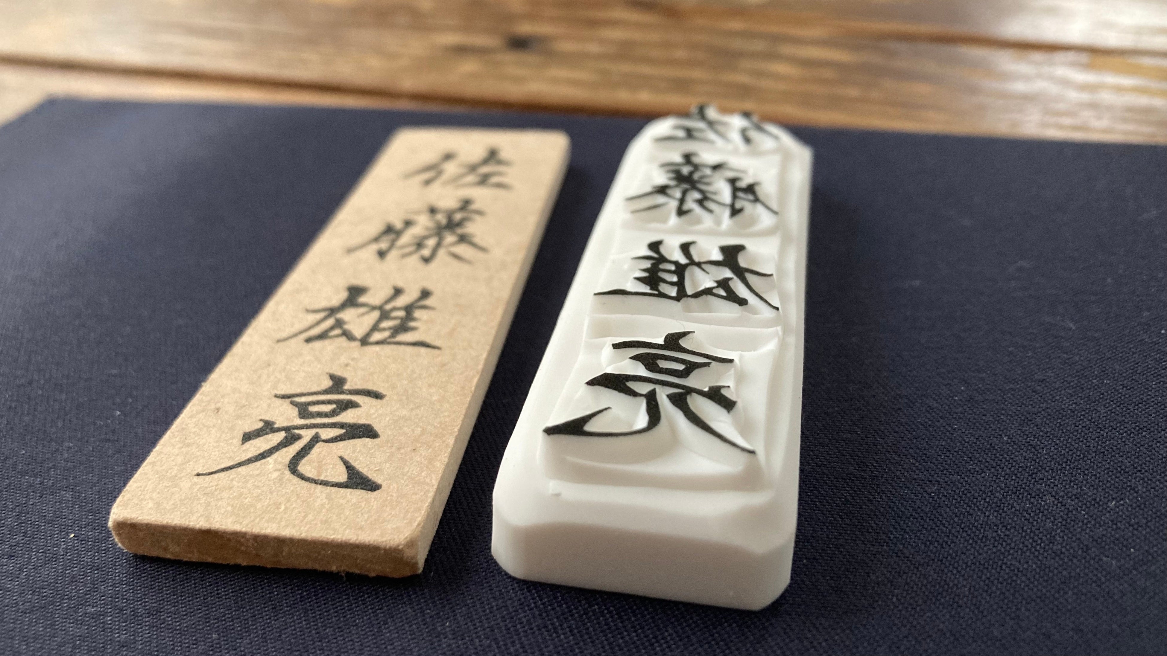 筆ペン・ボールペン字講師歴13年で文字インストラクターのBimoji 竹村きみえ氏が仕上げた筆文字を、消しゴムはんこ作家歴8年のchimney works 佐藤悠子が一つ一つ丁寧に手彫りの消しゴムはんこにしました。