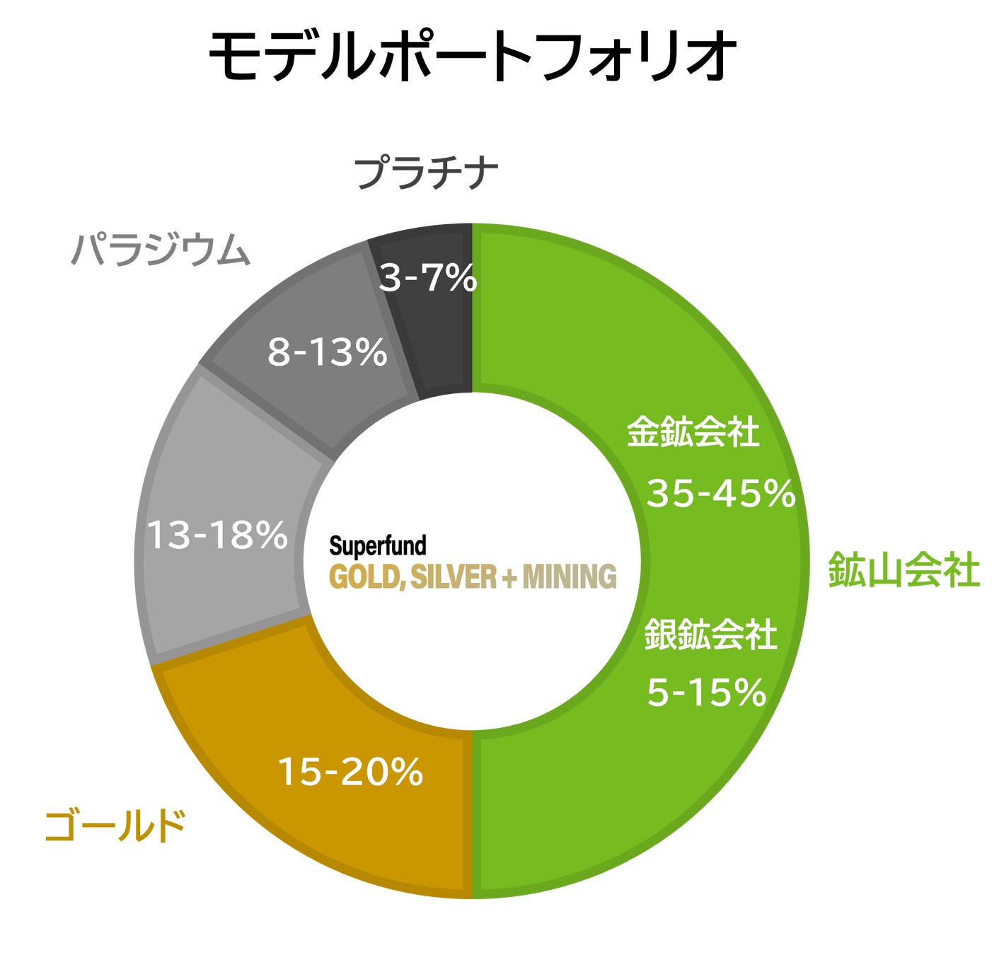 マスターファンド(スーパーファンド・ゴールド・シルバー・プラス・マイニング・ファンド分別ポートフォリオの場合)は、貴金属及び貴金属探査につき多様なポートフォリオを維持することを目指しています。投資目標を達成するため、マスターファンドは実質価値を保護し、投資によって収益を生むための施策を講じることができます。マスターファンド内の資産クラスのウェイト付けは、マスターファンド投資顧問会社によって決定されます。当該時点の経済及び金融市場の状況並びに金融市場商品の流動性、安全性及び収益性が、判断材料として用いられます。さらに選定基準には、例えば企業の時価総額、市場規模、市場の勢い及びその他のテクニカル指標も含まれる可能性があります。