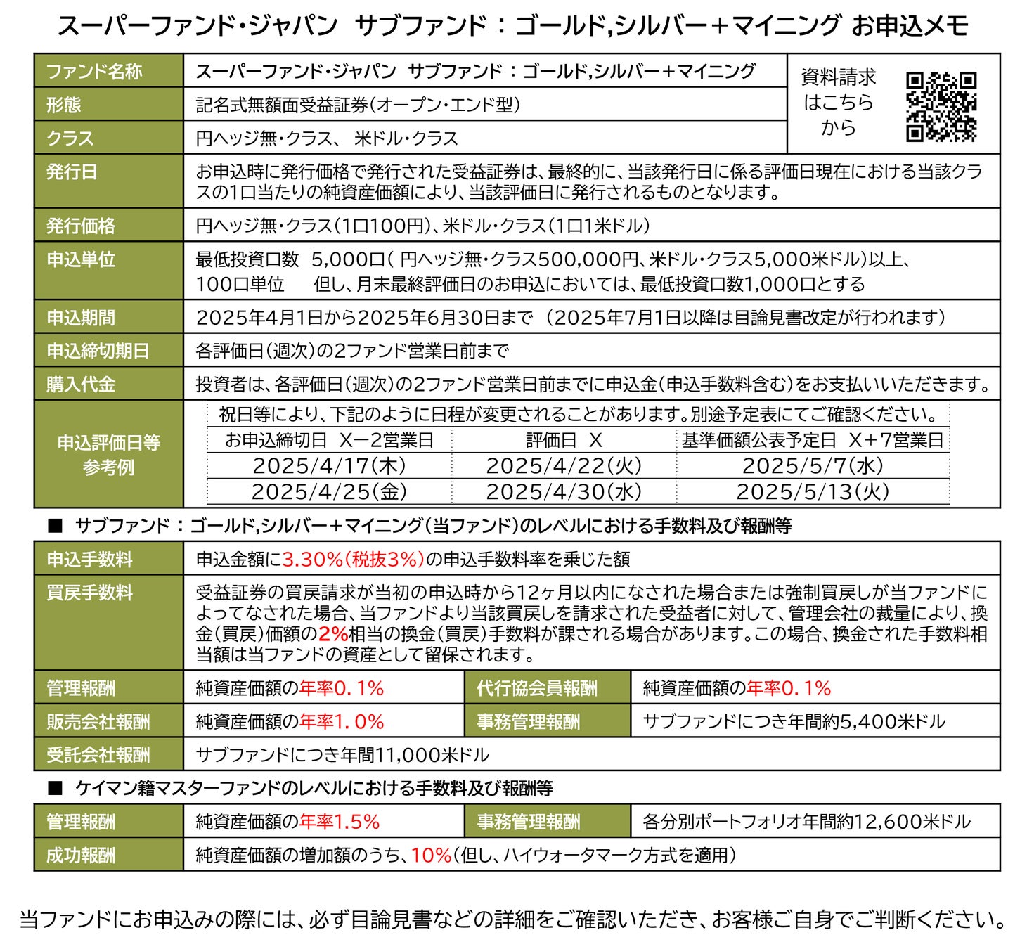 2025年4月、スーパーファンド・ジャパン株式会社は新商品「ゴールド、シルバー+マイニング」 ファンドを発売しました。