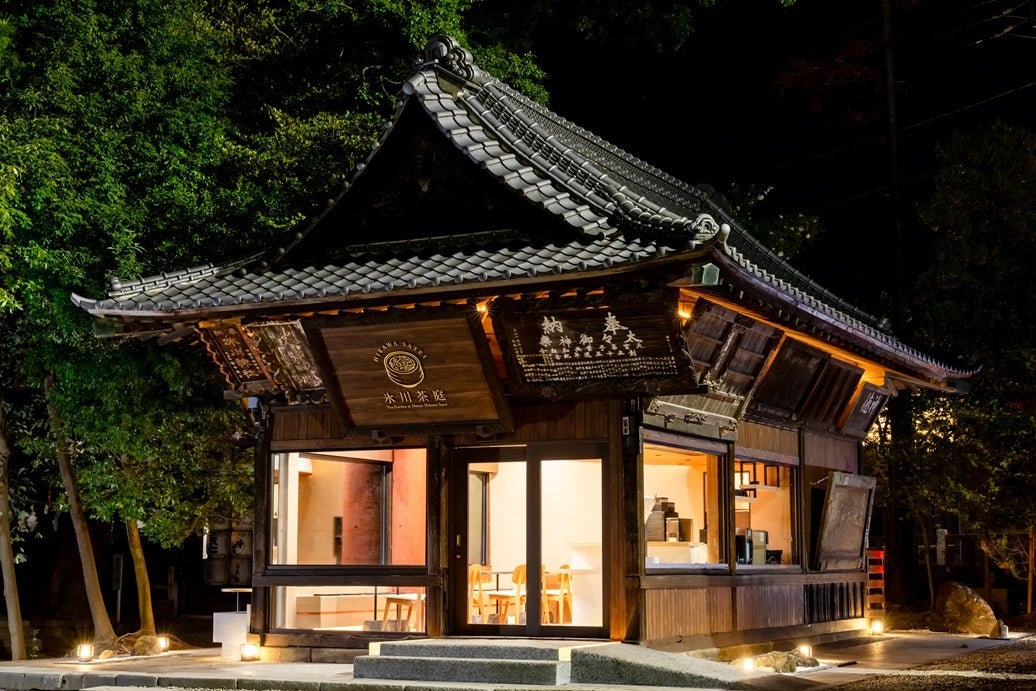 氷川参道三の鳥居をくぐりすぐ右手に位置する「氷川茶庭」。武蔵一宮氷川神社の境内にある「額殿」をリノベーションし、参拝者が氷川神社の美しい庭園を眺めながら、リラックスしてお飲み物を楽しむことができるお休み処です。歴史的な建物の屋根や骨格を最大限に活かしながら、氷川神社の名前に因んだ「水」と「氷」のイメージをデザインに取り入れ、歴史と現代が融合する空間を提供いたします。