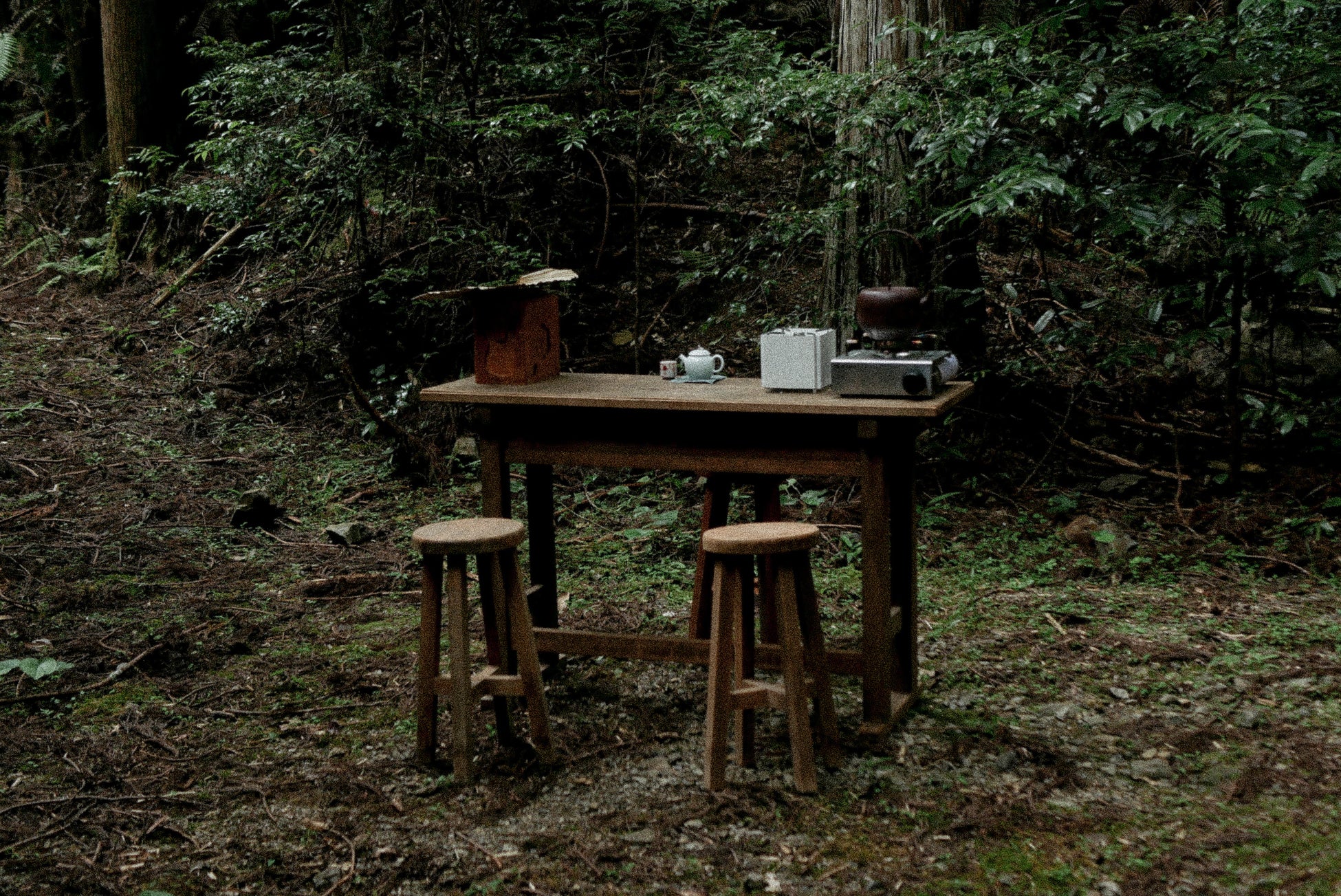 牟岐町の人工林には、杉や檜のみでなく、在来の茶木や植物が眠っています。yusanは、それらを「感覚を動かす素材」として扱います。現代社会では、多くの人が人工的な環境の中で生活し、季節や湿度、香りや音といった身体の微細な感覚が鈍化しています。山に足を踏み入れ、木々の香りや光の揺らぎに触れるとき、人の神経は無意識のうちにそれらを受け取り、緩み、再起動します。たとえば、山に自生する茶を摘み、煮出し、茶として味わう行為は、嗅覚・味覚・触覚を通じて環境と交わる体験です。それは単なる「自然とのふれあい」ではなく、失われた身体の知覚を取り戻す文化的実践であり、yusanはそのプロセスを日常に持ち帰るデザインを行っています。