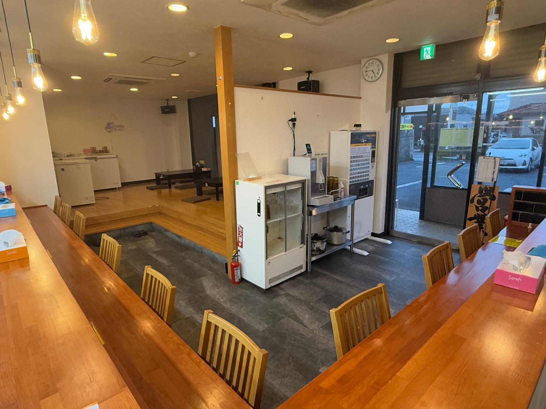 カウンター10席、座敷テーブル3席、共用駐車場19台。