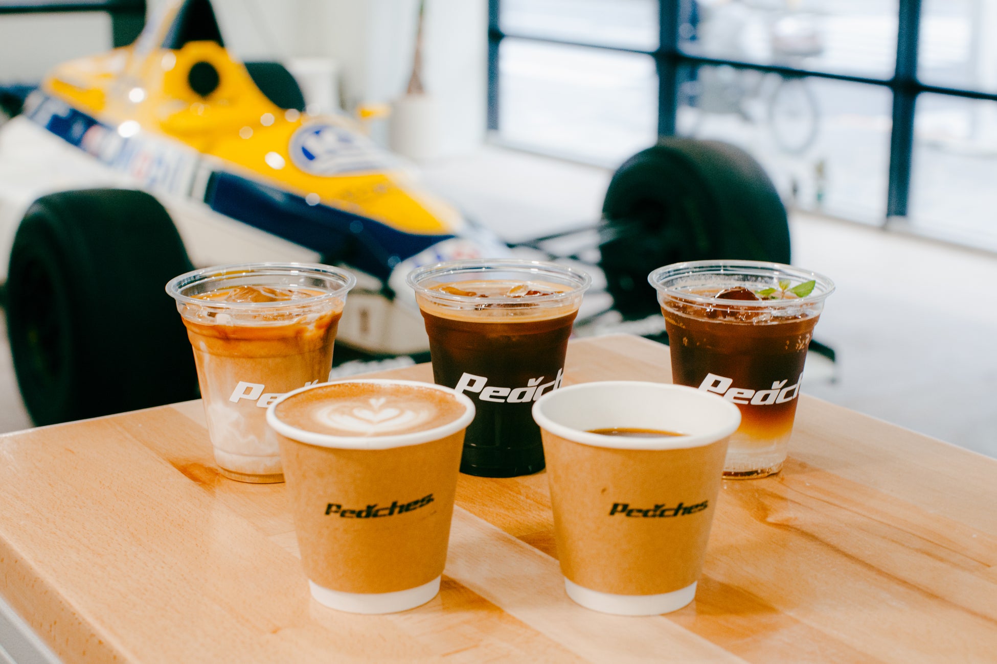 Peaches. Japan Garageのカフェの最大の特徴は、店内に展示された実車を間近で眺めながら楽しめる点です。展示車両は、カスタムカーや歴史的な車両など、世界中の名車を知るAutoRoman協力のもと、Peahces.独自のキュレーションで選定し、定期的に入れ替えを行う予定です。今回のカフェのオープンを飾る展示車両は、F1界のレジェンド、ウィリアムズ・レーシングのナイジェル・マンセルがかつて1988年に実際に運転した本物のF1マシン「ウィリアムズ・レーシングFW12」。クルマ好きはもちろん、普段モータースポーツに触れる機会が少ない方にも必見の展示です。