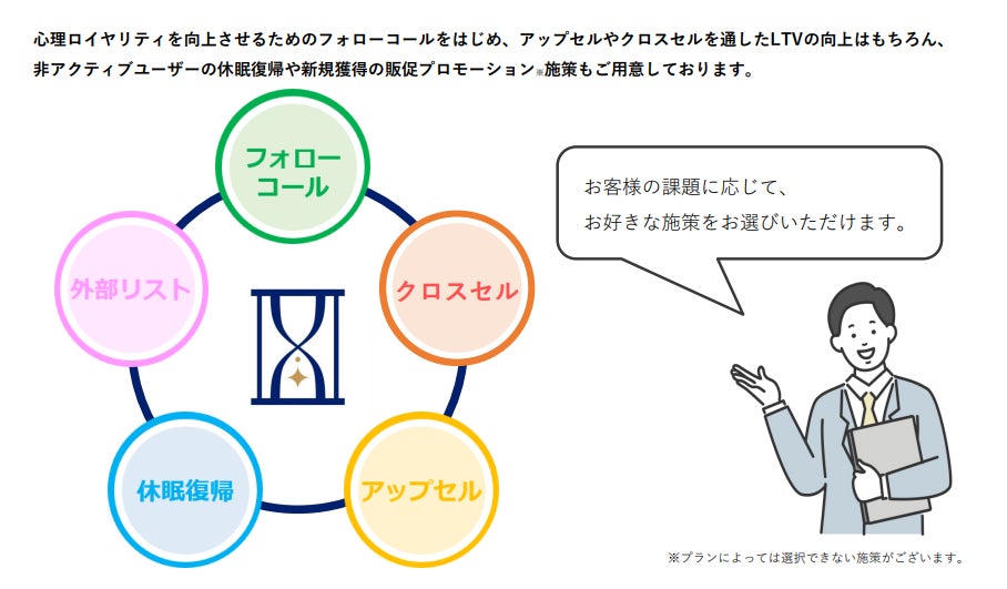 そのほかにもアップセル、クロスセル、休眠復帰を組み合わせることでLTV向上に貢献いたします。