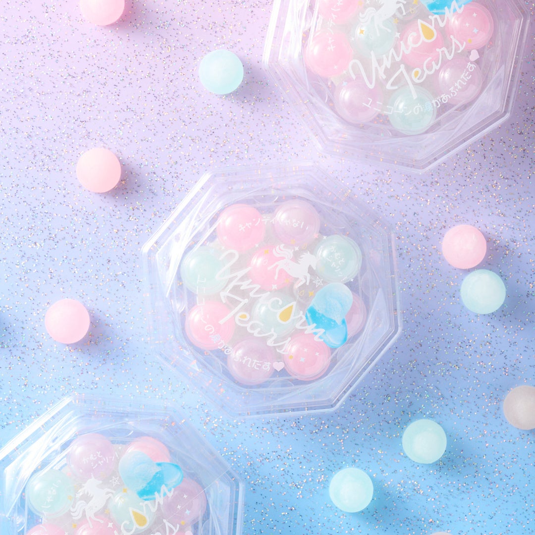 ユニコーンティアーズは、200万乙女のときめき&ゆめかわポエミースイーツ! ユニコーンのこぼした涙が、キラキラの宝石みたいなおかしになりました。 どこで買えるかひみつ!