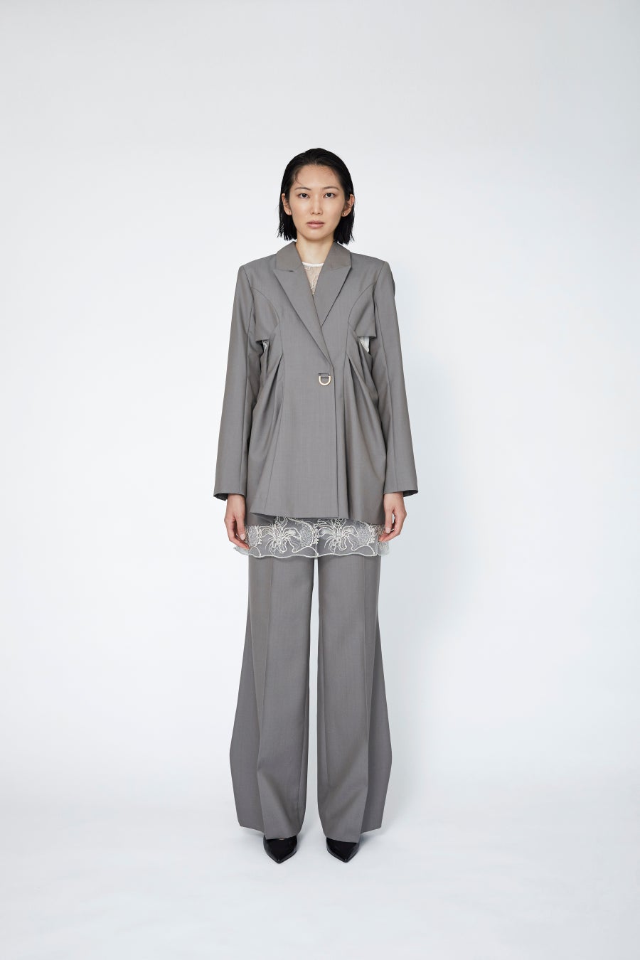 素材にはモヘア混のサマーウールを使用し、ドライで軽やかな風合いを実現します。オールシーズン対応の着心地で、セットアップとしてはもちろん、それぞれのスタイリングもお楽しみいただけます。