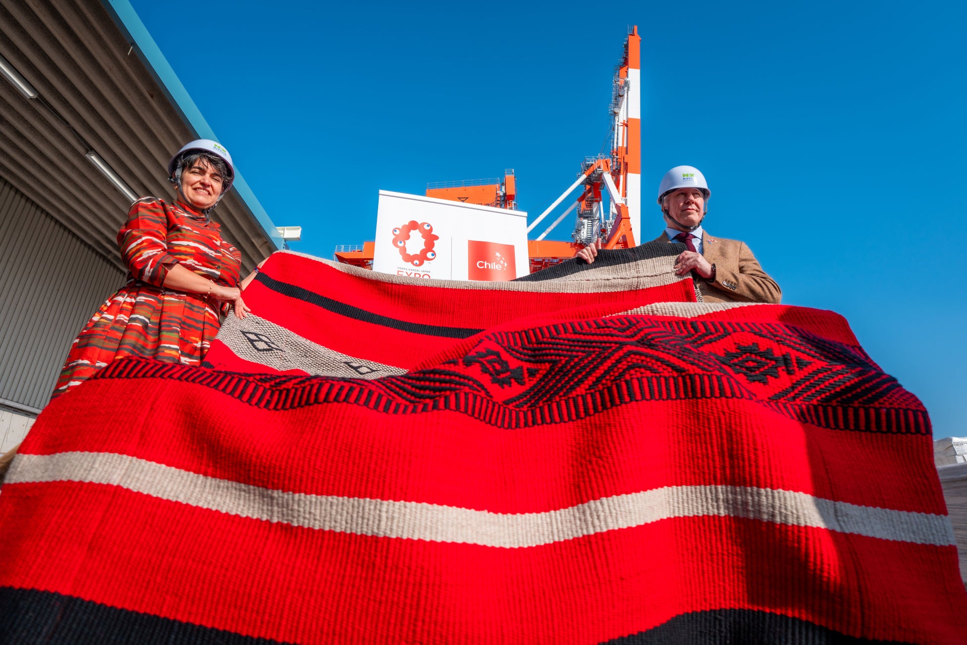 「本日、私たちは無事に『マクン』を受け取ることができました。木製のハイテクな構造のインスタレーションと合わせ、このユニークな職人技の詰まった作品は大阪・関西万博でのチリパビリオンの目玉となるでしょう。」