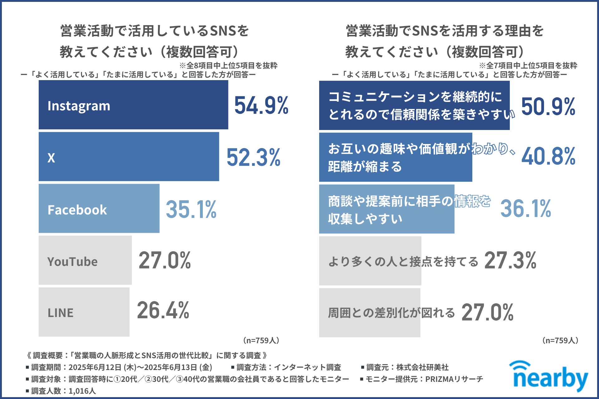 今回、「営業職の人脈形成とSNS活用の世代比較」に関する調査を実施した株式会社研美社(https://kenbisha-card.com/)は、デジタル名刺『nearby』(https://nearbycard.com/top/)を手掛けています。