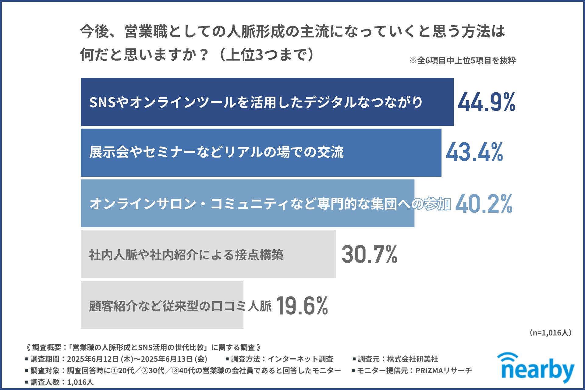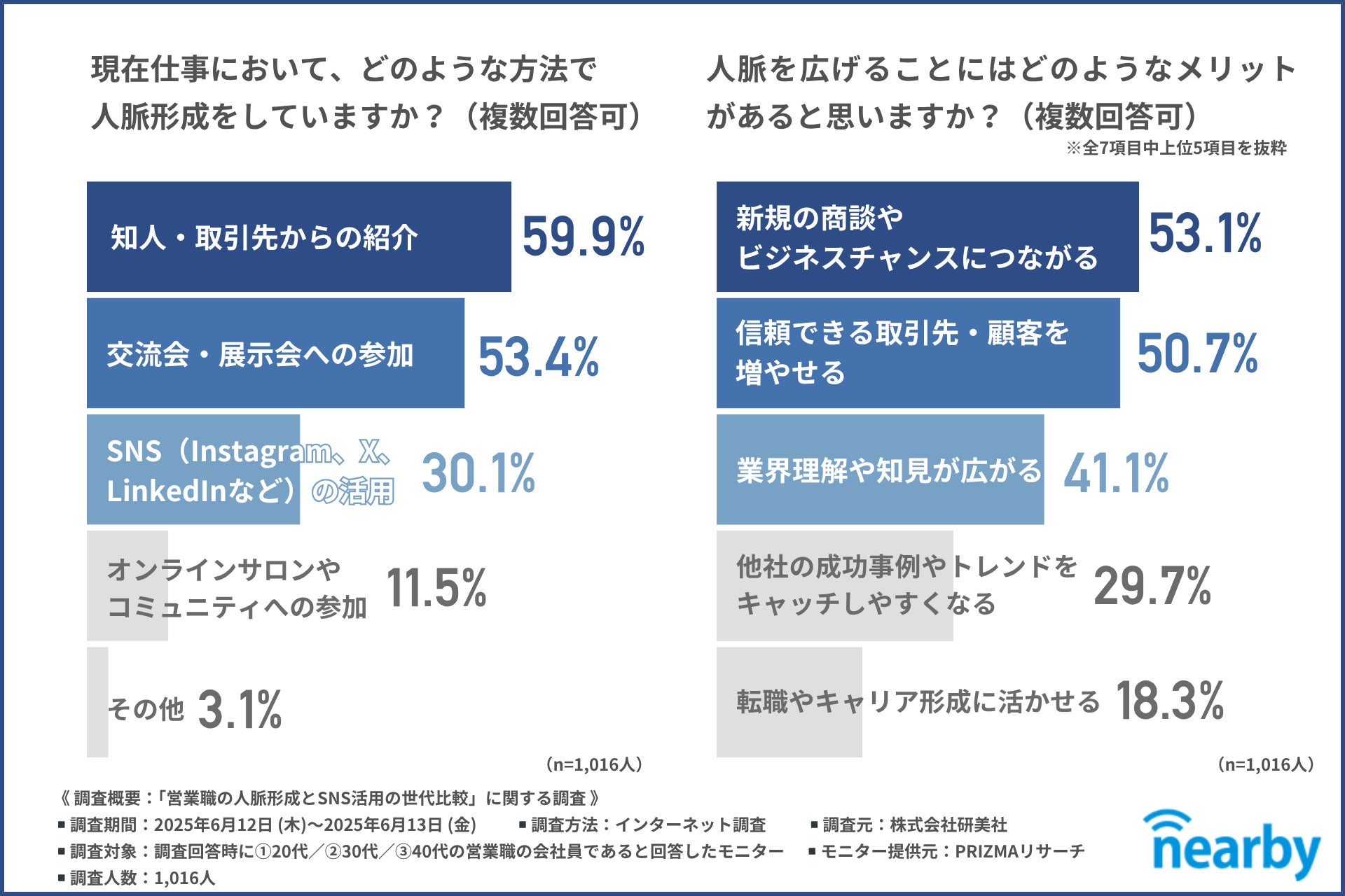 今回の調査で、「営業活動における人脈形成」が、世代やツールの違いを超えて多様化・高度化しているということが明らかになりました。