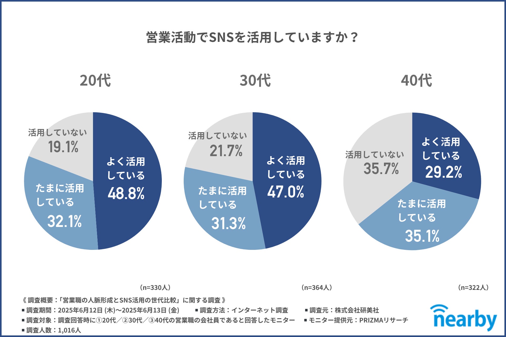 そこで今回、株式会社研美社(https://kenbisha-card.com/)は、①20代/②30代/③40代営業職の会社員を対象に「営業職の人脈形成とSNS活用の世代比較」に関する調査を行いました。