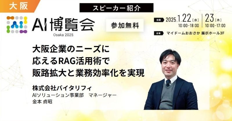 バイタリフィ、2025年1月22日~23日開催の「AI博覧会 Osaka 2025」に出展