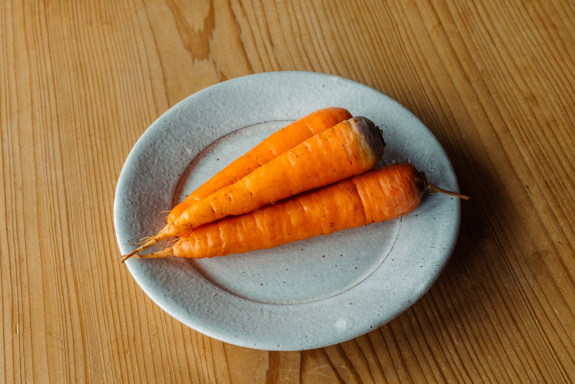 自然交雑から生まれた、長さ五寸ほどのにんじん。昭和10年頃から長崎で種が受け継がれ、今もその味を守っています。普通のにんじんよりも柔らかく、香りがよくて甘みが強い。カロチンたっぷりでクセも少ないから、生でもおいしくいただけます。